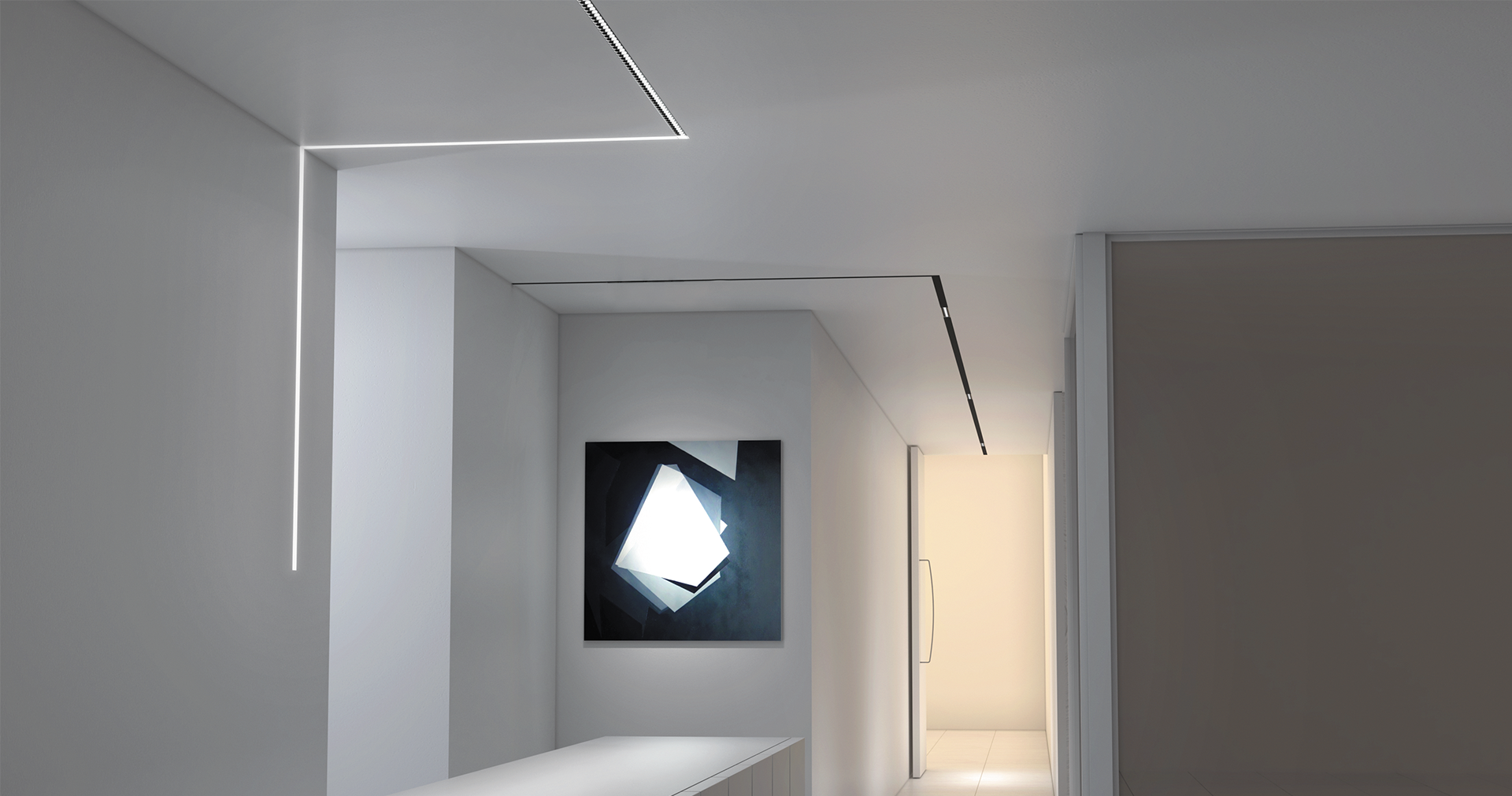 O sistema FLEXIBLE pode ser instalado de acordo com o ambiente, adaptando-se à arquitectura através de uma variedade de módulos e perfis disponíveis, instalados ao nível ou recuados em relação ao teto, proporcionando harmonia estética e máximo conforto visual.