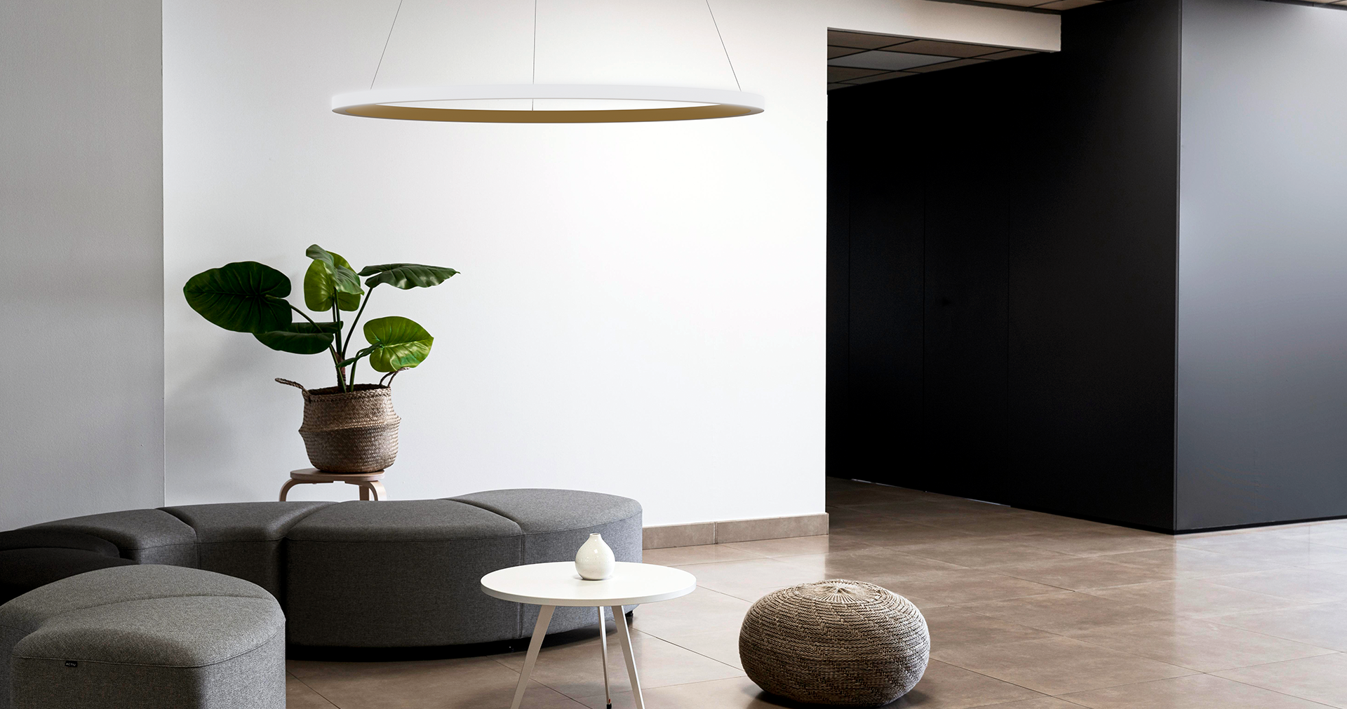 Icon TE SU é uma gama de produtos ornamentais suspensos, cuja presença em forma de anel preenche o espaço de forma livre, flutuante, desempenhando também a funcão de iluminar.
