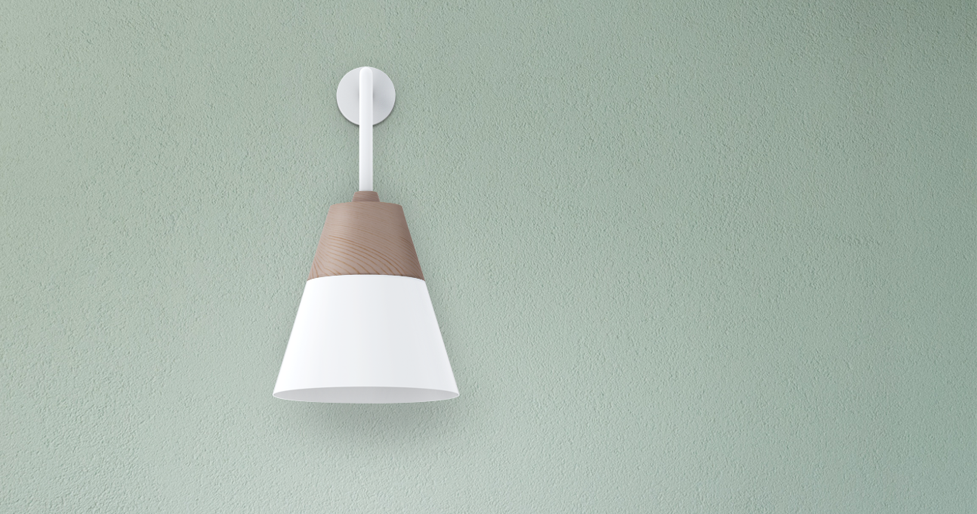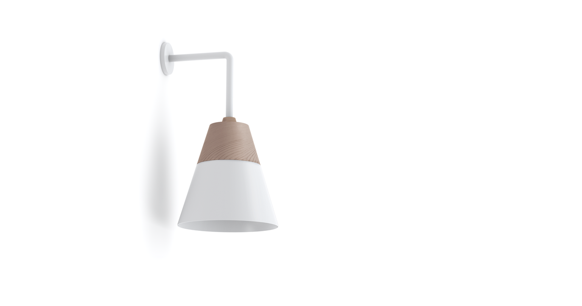 BELL PA é uma luminária saliente de parede, decorativa de formas simples, fabricada com recurso a madeira e a metal.